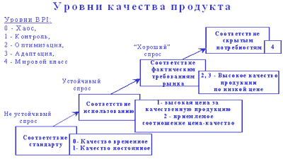 Уровень "мирового класса" рассмотрим с точки зрения качества продукта[4]. Уровни качества продукта представлены на рисунке 3.