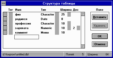 "Создать". Появится диалог "Структура таблицы" Рис. 3.1 Создание структуры таблицы