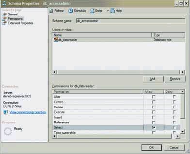 Рис. 2. Установка прав для схем данных