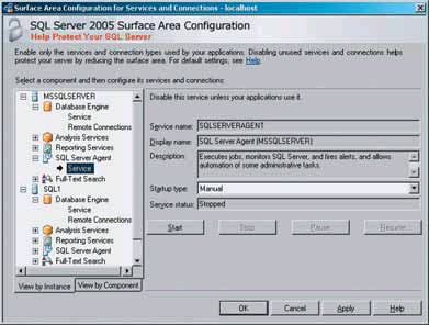 Для управления службой SQL Server Agent можно использовать утилиту Surface Area Configuration (рис. 3).